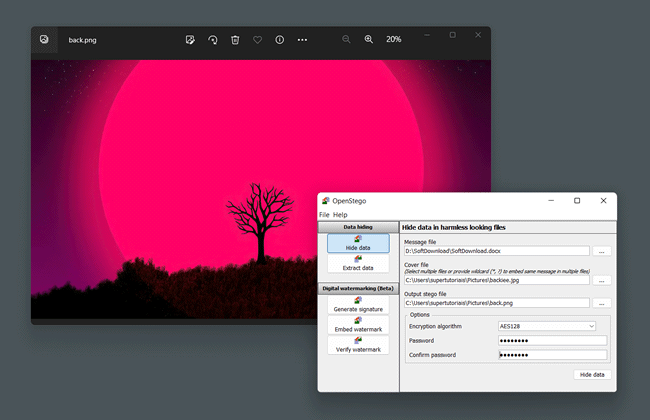 A esteganografia é a técnica de esconder uma “mensagem” secreta dentro de outra que parece inofensiva, como, por exemplo, uma imagem. OpenStego é uma ferramenta gratuita de esteganografia que lhe oferece uma forma simples de criptografar e esconder arquivos com informações confidenciais dentro de imagens.