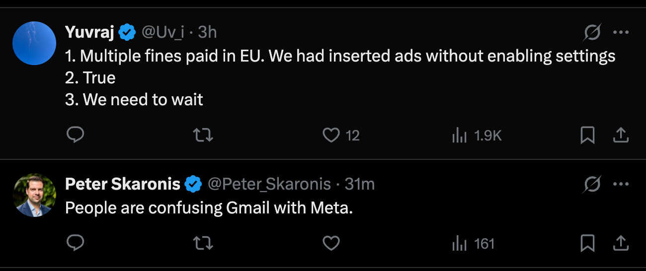 O menu de configurações afirma que os usuários que ativam os recursos inteligentes concordam em permitir que o Google use suas informações e atividades para personalizar a experiência. A Malwarebytes e o blogueiro Dave Jones interpretaram a redação como significando que a empresa está treinando IA com conteúdo do usuário, mas o Google insiste que isso é impreciso.