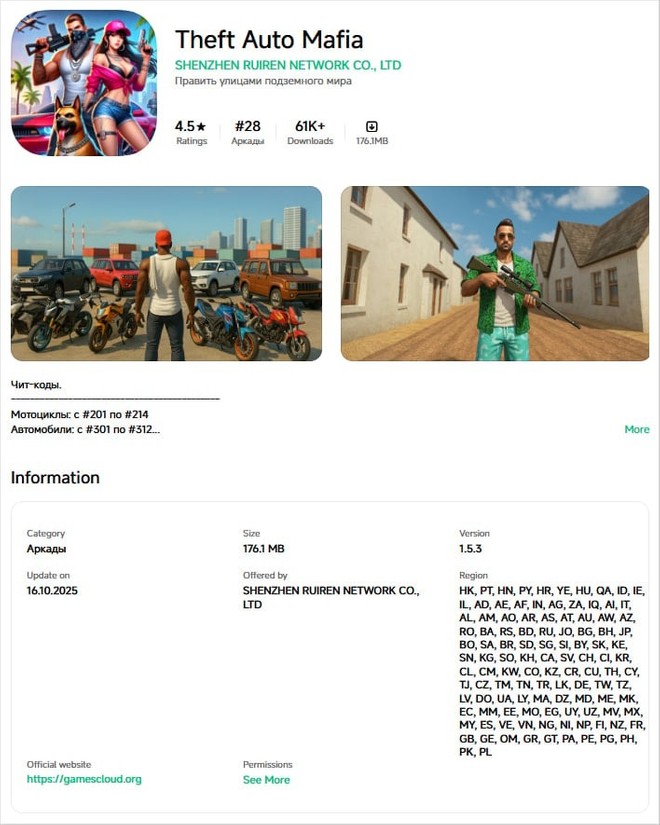 - Theft Auto Mafia — 61.000 downloads