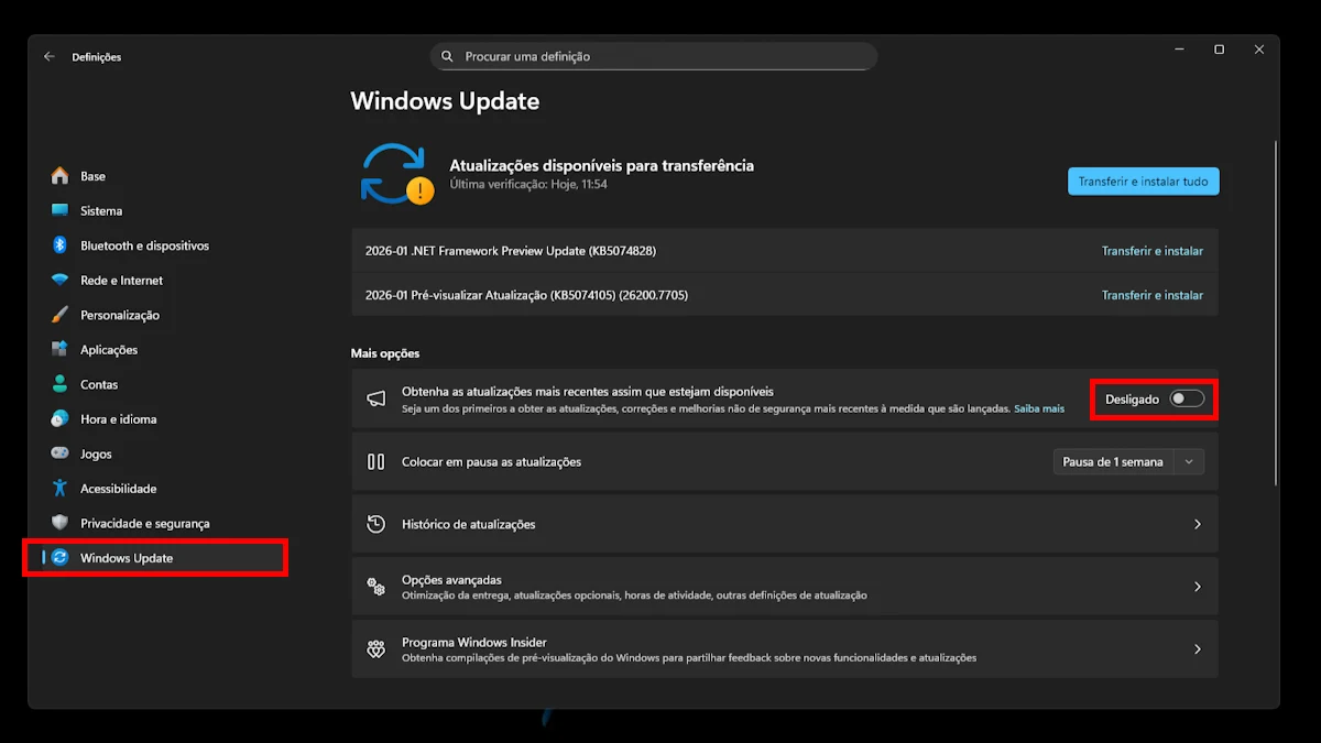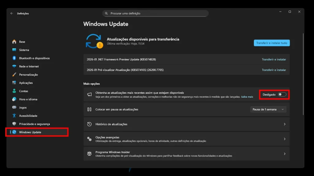 Caso o seu computador já tenha sido afetado por estas falhas, a solução mais eficaz passa pela desinstalação imediata da atualização KB5074105 através do histórico de atualizações nas definições do sistema. Após reiniciar o equipamento, é recomendável aceder a "Definições" > "Windows Update" e desativar a opção que permite receber atualizações antecipadas, garantindo que o seu PC apenas descarrega versões finais e validadas.